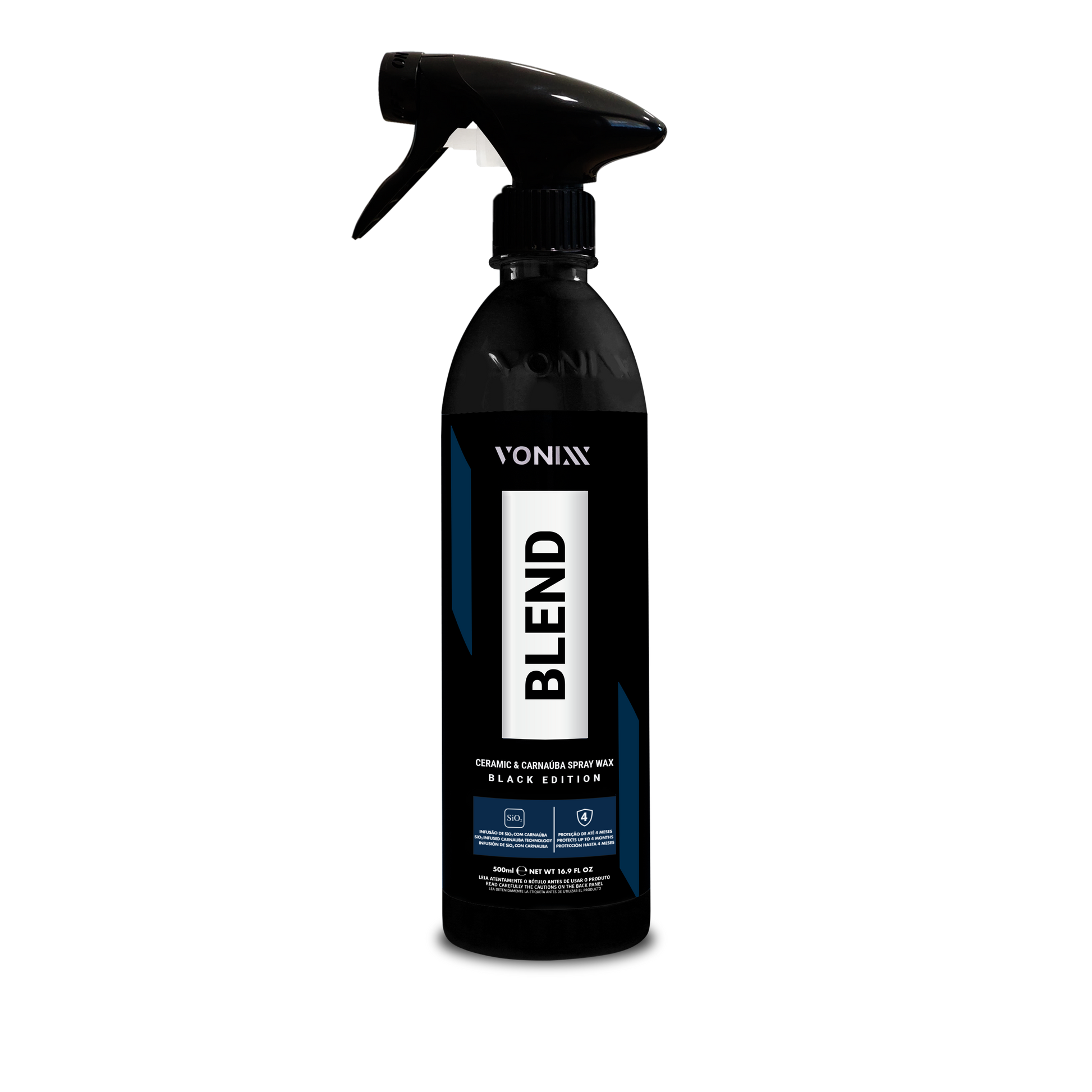 BLEND SPRAY BLACK EDITION - is a hybrid wax composed of SiO2 and the purest type 1 carnauba wax, providing protection for vehicle surfaces for up to four months, especially designed for dark paints. The product enhances ceramic resistance, delivers the warm shine of carnauba, and offers hydrophobic properties.