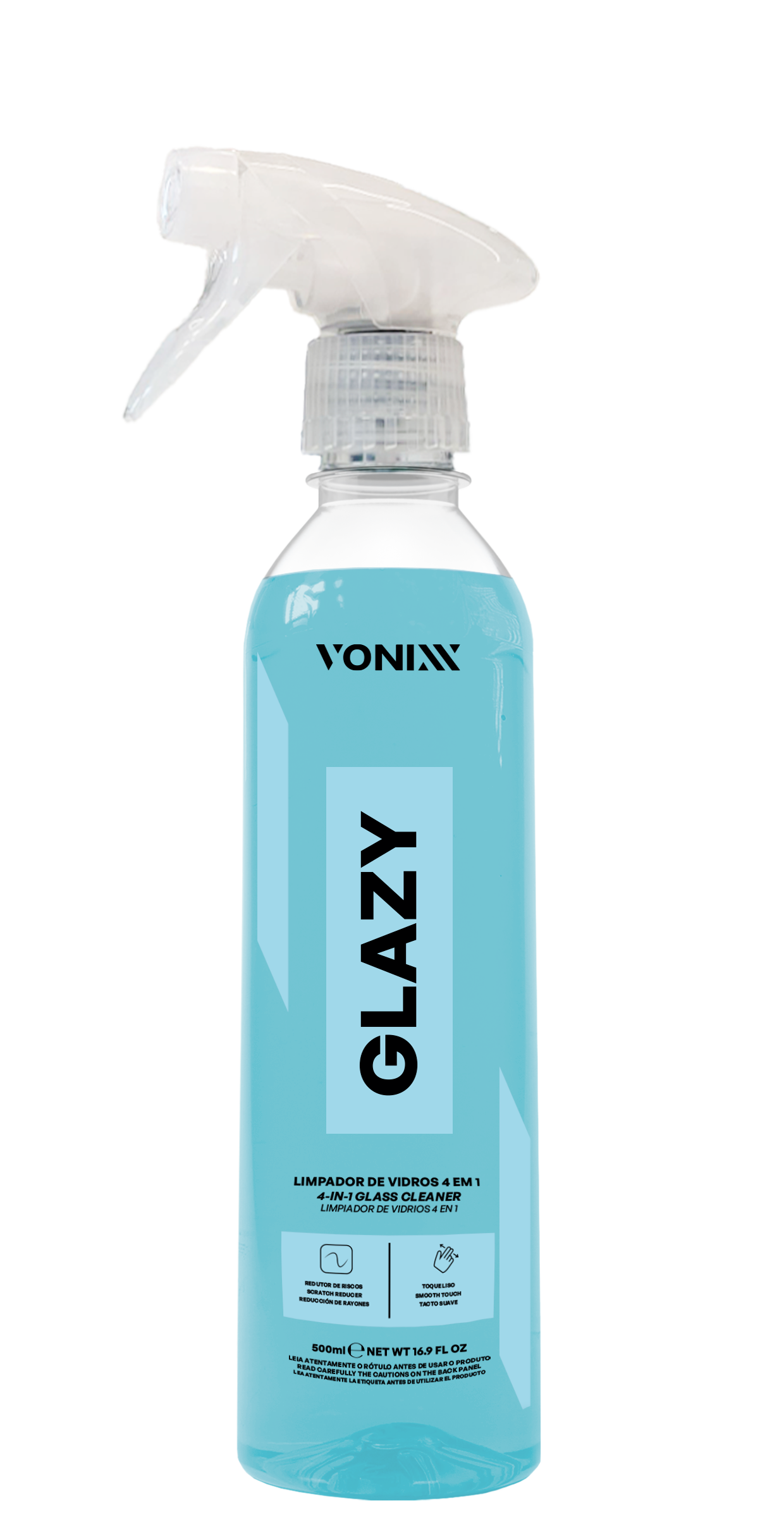 GLAZY is a high-tech, 4-in-1 solution developed by VONIXX for automotive glass care. This innovative product cleans, protects, conditions, and reduces scratches on glass surfaces. Its advanced polymer formula minimizes friction, decreasing the likelihood of scratches caused by windshield wipers and side window movements. GLAZY leaves a smooth, streak-free finish, restoring a like-new appearance to your vehicle's glass.
