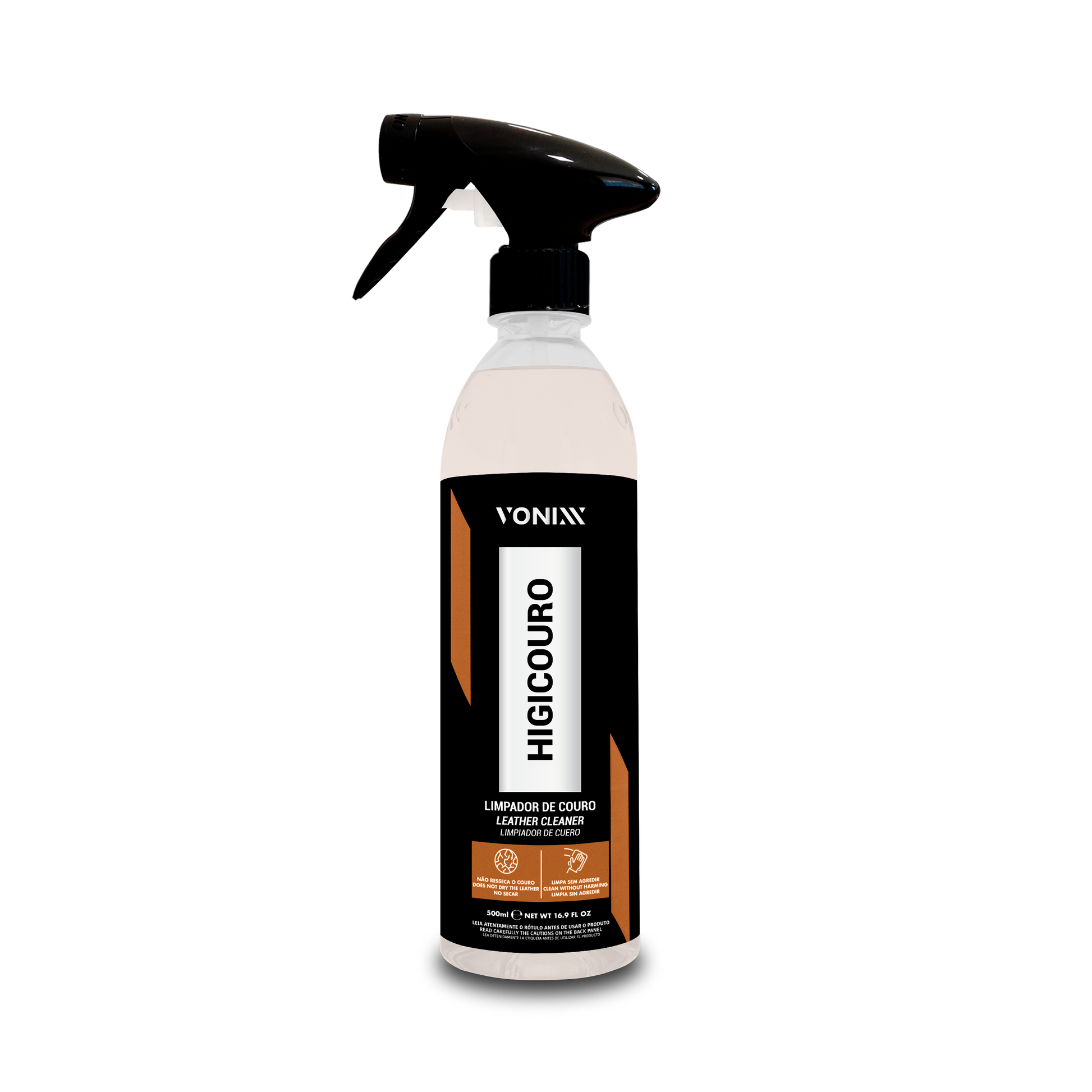 HIGICOURO safely cleans leather seats and other leather surfaces in vehicles, effortlessly removing impurities without harming the material and renewing its appearance.
