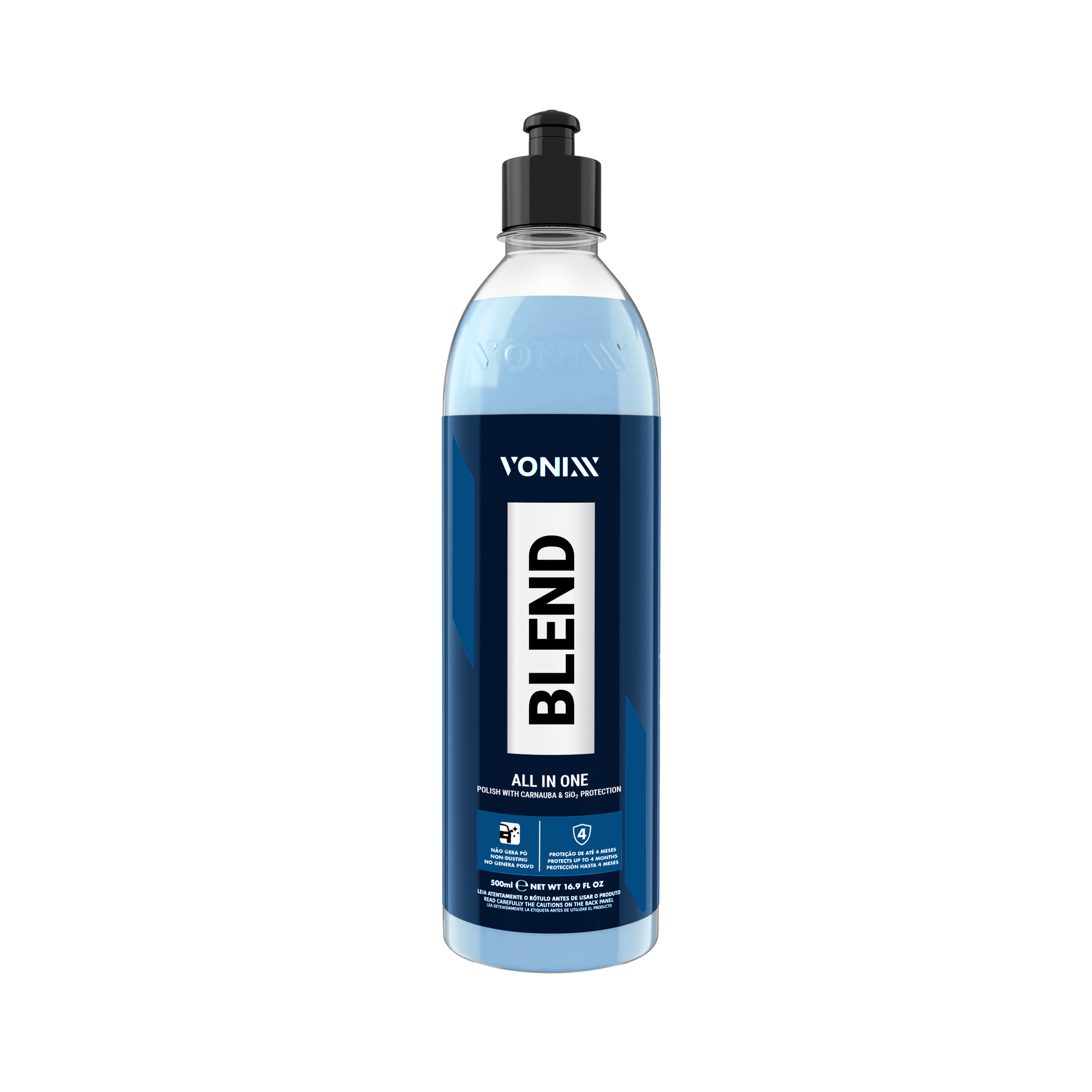 BLEND ALL IN ONE - is a single-step polish with protection that combines the shine of carnauba wax and the ceramic resistance of SiO2, also promoting hydrophobic properties on the paint surface. Its high cutting power eliminates medium to severe scratches and swirls (comparable to P2000 sandpaper or finer), leaving an excellent finish simultaneously.